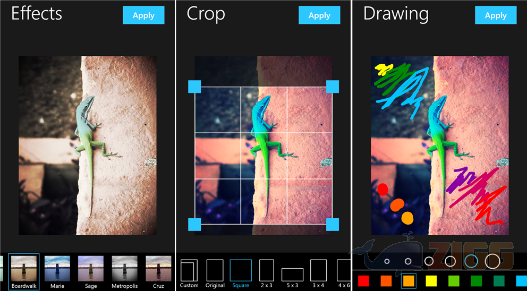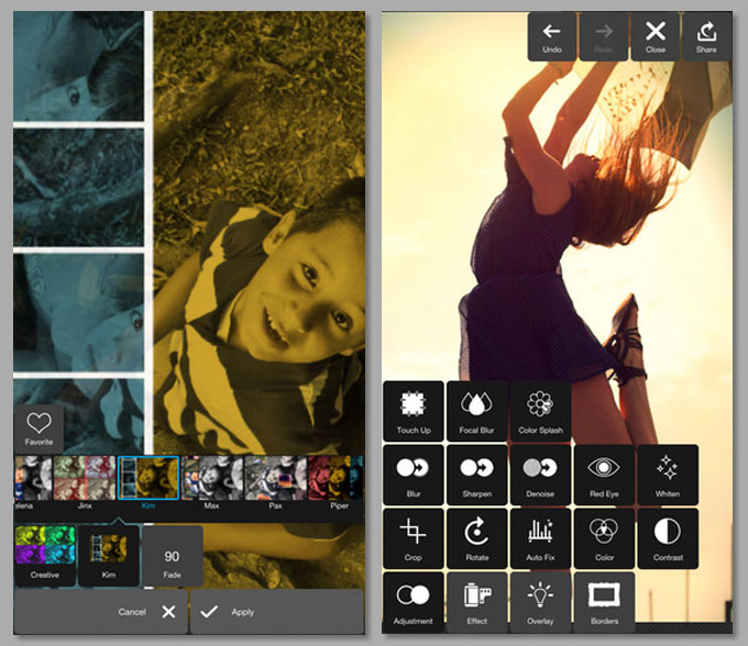 Aplikasi edit foto ini memperlihatkan fasilitas dalam penambahan effect, frame, red eye, stiker dan effect foto yang banyak baik itu berbayar maupun gratis. Hasil gambar yang di edit pada aplikasi ini berkualitas elok dan tidak pecah.
